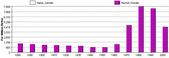 Rachel for every one million births in the U.S., by decade.